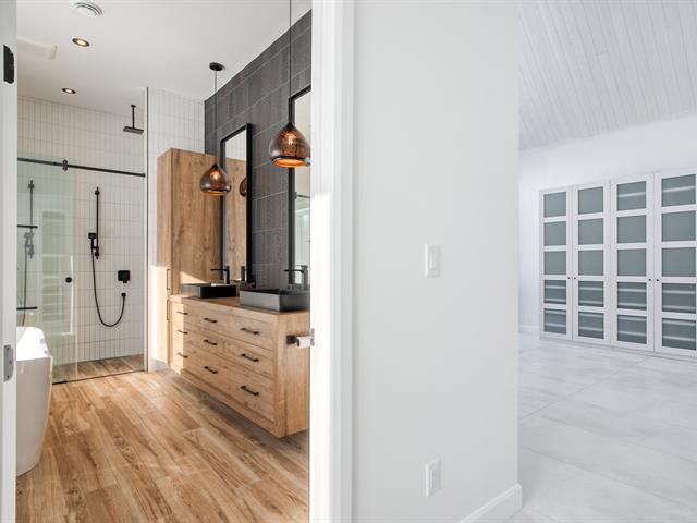 Découvrez cette magnifique maison chaleureuse, raffinée et prête à accueillir vos plus beaux moments. Son aire ouverte et ses plafonds en hauteur créent une atmosphère spacieuse et accueillante, relevée par une luminosité naturelle abondante grâce aux grandes fenêtres. Le plancher chauffant dans toutes les pièces assure une chaleur douce et enveloppante, tandis que la cuisine moderne, avec son vaste comptoir lunch, devient le coeur de la maison. Ses trois càc offrent un espace de repos paisible, dont la chambre des maître dispose d'une SDB attenante pour plus d'intimité. Ses garages pratiques complètent parfaitement ce bijou architectural. (46412367)