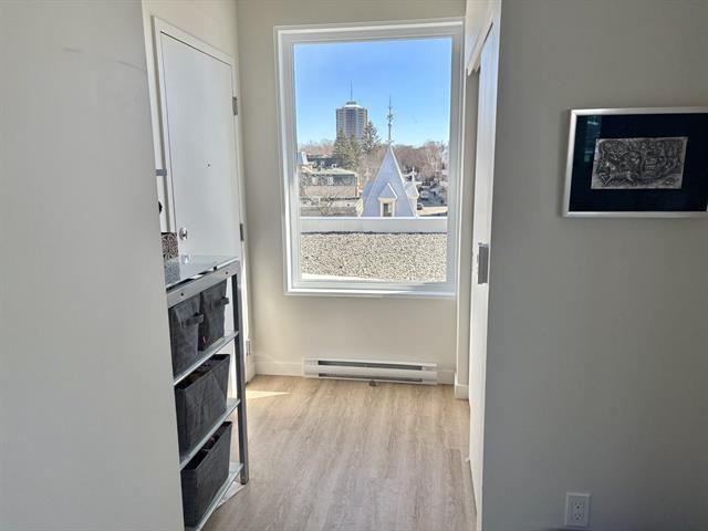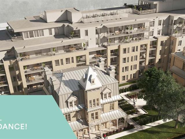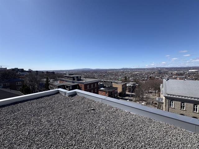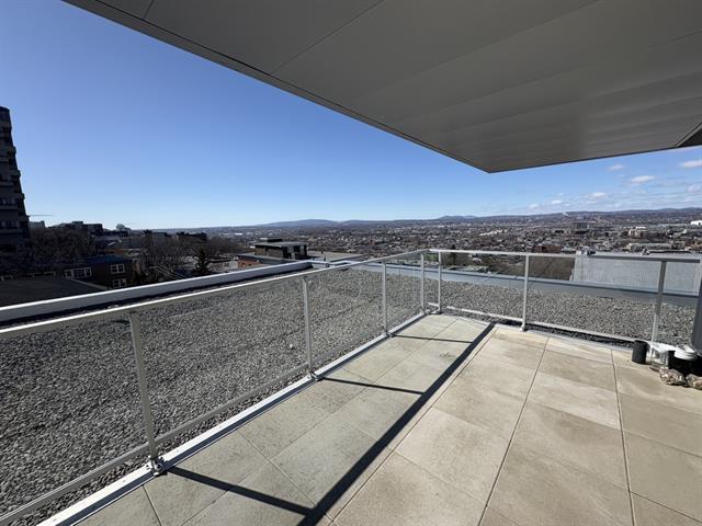 Ce magnifique (Penthouse) offre une superbe vue sur les montagnes. Fenestré sur trois côtés, profitez du soleil matin, midi et soir. Le positionnement de la terrasse vous offre un splendide coucher de soleil. Un édifice offrant la modernité et les commodités d'un espace locatif urbain avec le caractère du riche patrimoine historique existant. Construction au goût du jour, en tout respect de l'histoire de son site. Aires communs: terrasse sur le toit, salle d'exercice, jardins communautaires. (42093921)