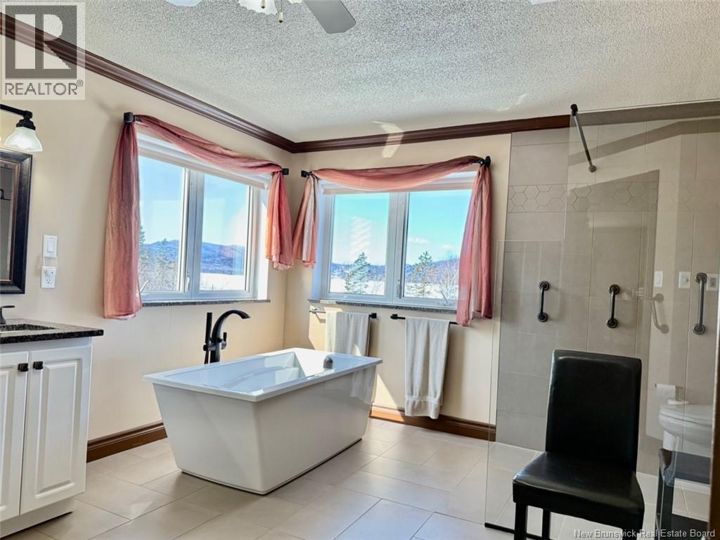 Bienvenue au 53 promenade Restigouche, Tide Head. Cette superbe maison repose sur un terrain de 2,2 acres magnifiquement aménagé, offrant une vue imprenable sur la rivière Restigouche et les Appalaches. Elle est située près du sentier NB, parfait pour la marche, le vélo, le VTT et la motoneige. Le rez-de-chaussée propose un concept à aire ouverte, reliant la salle familiale, le salon avec foyer au propane et une grande cuisine de chef avec deux fours et un immense îlot. La cuisine donne accès à un patio en aluminium sans entretien. Un hall dentrée, une salle à manger formelle ainsi qu'une salle deau complètent l'étage. Le côté nord de la maison est bordé de fenêtres permettant de profiter de la vue panoramique. À létage, la suite des maîtres occupe tout le niveau et comprend un grand walk-in ainsi quune salle de bain entièrement rénovée avec laveuse et sécheuse. Le sous-sol comprend une salle familiale avec poêle à bois, une chambre à coucher, une salle de bain, une buanderie, deux pièces supplémentaires, une salle de rangement, une salle mécanique et un espace de rangement supplémentaire. Une entrée circulaire asphaltée mène au garage double attenant avec plancher en époxy. Le garage est également équipé dun évier et dune laveuse. Caractéristiques supplémentaires: système de thermopompe géothermique avec puit dédié, génératrice de secours, adoucisseur deau, robinet deau bouillante instantanée à lévier de la cuisine, aspirateur central + système dalarme résidentiel. (28235516)