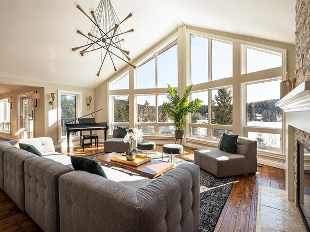 * SAISON HIVERNALE 2025-2026 * Chalet décoré avec goût, LA PERLE DES MONTAGNES est niché au coeur du golf Royal Laurentien, l'un des plus beaux parcours du Québec. Ce chalet a été conçu pour s'intégrer harmonieusement à son environnement naturel. La résidence offre un piano quart de queue, deux cuisines, trois salons, quatre salles de bain complètes, cinq chambres et deux foyers au gaz. Grâce à sa configuration généreuse, il est idéal pour plusieurs familles. Son haut plafond cathédrale, ses immenses fenêtres et son concept à aire ouverte créent un espace aéré, agrémenté d'une vue spectaculaire sur le lac et les montagnes. (45129347)