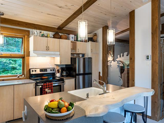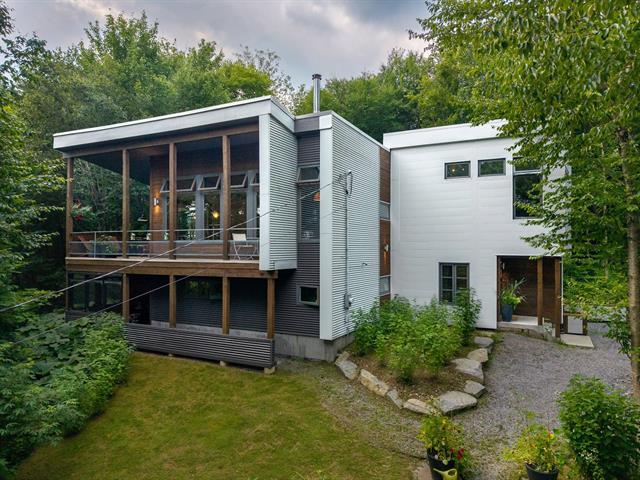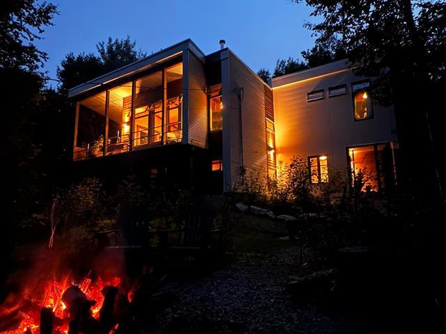 Solidement attaché dans le roc, elle surplombe la cime des arbres et le merveilleux lac naturel. Son accès au lac avec un quai partagé et son calme appaisant vous mettent en harmonie avec la nature. De construction récente avec matériaux choisis. Le mariage du contemporain avec les boiseries lui donne un style unique. Ses foyers, sa salle familiale, la fenestration abondante nous inondent d'énergie. Rez-de-jardin complètement aménagé avec terrasse en béton. Seulement 21 propriétaires profitant de ce coin de paradis. Canoe, kayak, paddle board, ponton électrique, sans oublier les nombreux sports d'hiver. Venez vivre le rêve! (47291709)