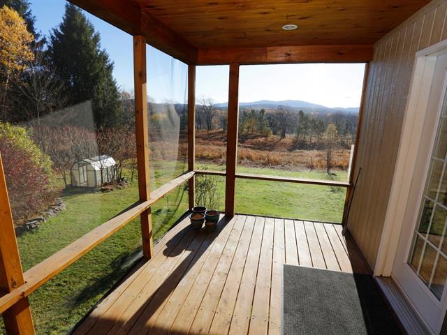 Vue imprenable sur les montagnes depuis plusieurs pièces, quatre vérandas, une serre et un chalet détaché idéal comme bureau, atelier d'artiste ou menuiserie. L'étage principal comprend hall, salon, salle familiale, salle à manger, cuisine, garde-manger, deux salles d'eau, chambre au rez-de-chaussée et accès à une véranda moustiquaire, deux vérandas supplémentaires et l'allée. Le niveau inférieur offre deux chambres, salle de bain complète avec laveuse-sécheuse, rangement, sous-sol partiellement aménagé et accès à une véranda. À 1h10 de Montréal et 50 min de Sherbrooke. (46030251)