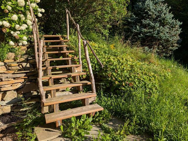En pente, Armoires en bois, Fenêtres PVC, Allée non pavée