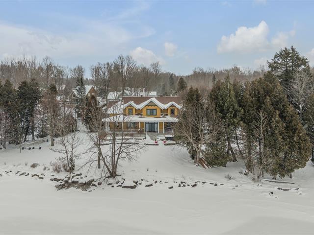 RARETÉ AU BORD DE L'EAU -- Élégance Rustique & Art de Vivre en Nature. Rare opportunité en bordure du Grand Lac Saint-François : magnifique propriété rustique sise sur un terrain intime de 33 000 pi² avec 218 pi linéaires sur l'eau + plage privée. Située dans une rue sans issue et une baie paisible à proximité de la marina, elle offre une descente de bateau, un grand garage avec prise pour motorisé, une cuisine de chef, un foyer au gaz, plusieurs espaces de couchage et un spa. Parfaitement orientée pour profiter du coucher du soleil. Le soir, la galaxie se dévoile dans toute sa splendeur. Un lieu où confort, nature et élégance se rencontrent. (39991339)
