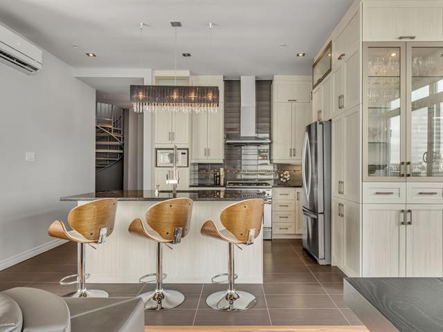 Découvrez ce Penthouse d'exception et exclusif! Unité de 2350 pc sur 2 étages, avec espaces de vie surdimensionnés. Plafonds 10 pieds, L'aire de vie principale est entièrement fenestrée pour un maximum de luminosité et pour vous permettre de profiter des différentes vues où que vous soyez. Offrant 2 chambres avec possibilité de 3, 3 salles de bains, une cuisine haut de gamme et un salon chaleureux, se prolonge vers 3 terrasses privées où détente et convivialité sont au rendez-vous. A l'étage, salle de cinéma et bureau. Profitez d'un spa, 2 stationnements intérieurs, rangement. Une opportunité rare à saisir sans attendre. (49172445)