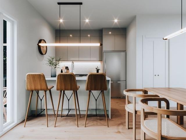 Dernier unité 3 1/2. Nouveau condo en construction (1 chambre) située sur le domaine sur le Vert à St-Hyacinthe, aucun voisin arrière, rez-de-jardin, 640 pieds carrés, grande fenest. au salon et à la chambre., pl. flottant, cuisine de mélamine, bain douche en céramique, terrasse arrière de 8-8 x 7-4 pieds, 1 espace de stat. inclus, asphalte, pelouse, aménagement paysager, 1 cabanon de 6 x 8 pieds et garantie GCR incluse École et services à proximité. Produit livré clé en main, Occupation 15-12-2025, comm. avec Martin Lacroix 514-444-6872 TPS/TVQ doivent être ajoutées au prix demandé (51036999)