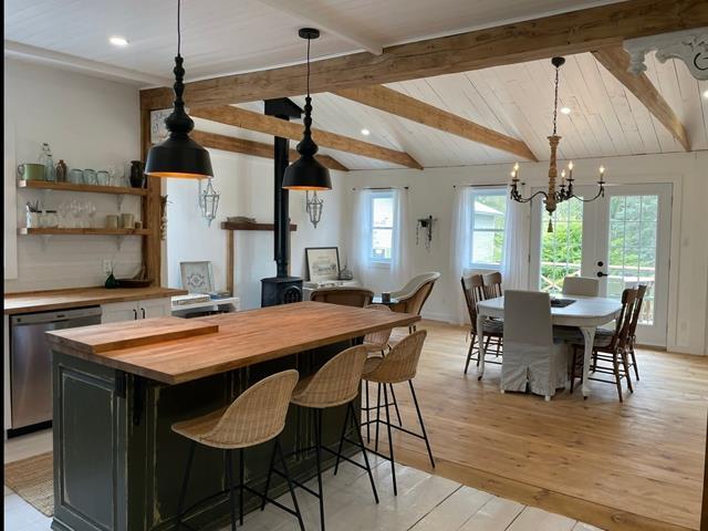 CLÉ EN MAIN. Complètement rénovée en 2023-24. Charmante maison ancestrale au coeur du village pittoresque de Frelighsburg, avec un très grand terrain, aucun voisin arrière et bordée par plus de 450 pieds sur la rivière aux Brochets. Pièces lumineuses avec planchers et plafonds de bois et poutres accents qui lui confère une ambiance des plus chaleureuse. Grande pièce ouverte, comprenant cuisine, salle à manger et salle de séjour, agrémentée d'un poêle à combustion lente. Cette belle propriété possède 3 chambres à coucher et 2 salles de bain complètes. Prise de possession rapide. TPS/TVQ doivent être ajoutées au prix demandé (57233258)
