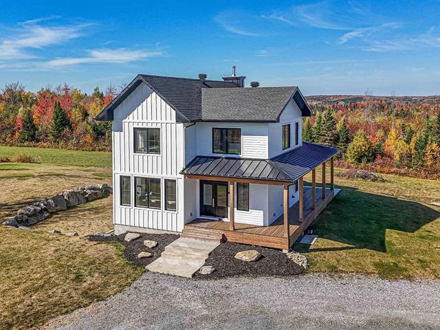 Vivez en harmonie avec la nature en retrait de la route! Cette superbe maison de style farmhouse (cons.2022) située sur une terre agricole de 60 arpents (20.7 hectares) avec partie boisée et culture. Bien pensée avec sa possibilité de 4 chambres au design soigné partout, vous en serez conquis. Voyez son rdc avec ses plafonds hauts en bois, sa cuisine de chef avec comptoirs de quartz et sa magnifique fenestration. Grand confort grâce à sa thermopompe centrale, ses céramiques chauffantes au rdc et son foyer au bois. Vue panoramique omniprésente sur les montagnes. Un lieu unique pour inspirer votre style de vie tout en étant près des services! (49404514)