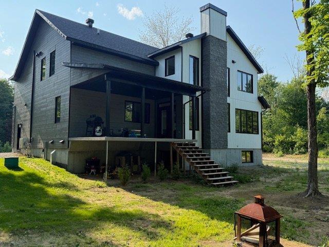 Magnifique propriété à aire ouverte avec garage intégré. Les aires de vie sont très spacieuses. Le salon possède un plafond cathédral où la mezzanine est mise en valeur. La cuisine est très aérée. La demeure dispose de 6 chambres à coucher, 3 salles de bains complètes, 1 salle d'eau, 1 salle de lavage, 1 grande salle familiale au sous-sol, de planchers chauffants au glycol. La résidence est résolument moderne, chaleureuse et confortable. Le terrain aménagé de 43,109 pc sur un site tranquille et facile d'accès à l'année. Idéale pour une famille nombreuse qui cherche une oasis de paix. (57534514)