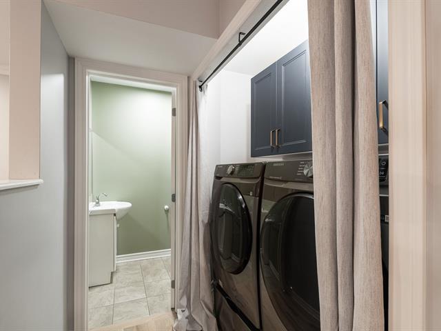 Magnifique copropriété de style maison de ville sur deux niveaux, certifiée Novoclimat et construite en 2009. Entretenue avec soin, elle offre une aire de vie ouverte et lumineuse, un salon chaleureux, une salle à manger conviviale et une cuisine design refaite entièrement par un cuisiniste avec des comptoirs de quartz. À l'étage : chambre principale avec walk-in et 2 grands balcons, seconde chambre et salle de bains avec bain podium et douche séparée. Garage intégré, rangement au sous-sol. À 5 min du métro Monk et du canal Lachine, près de tous les services. (56854743)