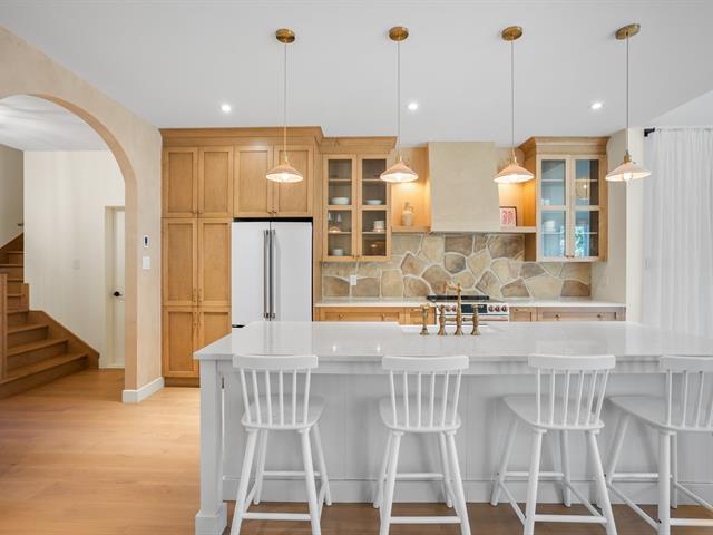 Située sur une rue sans issue près de la réputée Lab-École, cette chaleureuse propriété de style farmhouse est dotée d'un espace intergénérationnel. Elle séduit par son charme, son raffinement, ses matériaux haut de gamme. Plafonds de 9 pi et planchers radiants. La maison principale offre une cuisine signature avec îlot et comptoirs de quartz, un salon avec foyer au gaz, une grande salle familiale, ainsi qu'une suite des maîtres en retrait des deux autres chambres pour plus d'intimité. Le logement secondaire comprend une chambre et une salle de bains. Terrain de plus de 58 000 pc, terrasse couverte, piscine creusée (sel) et garage chauffé. (50820057)