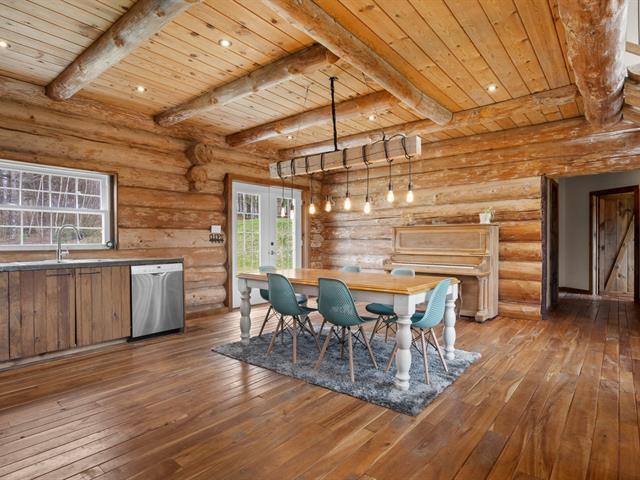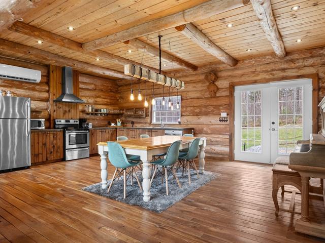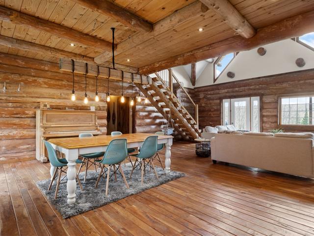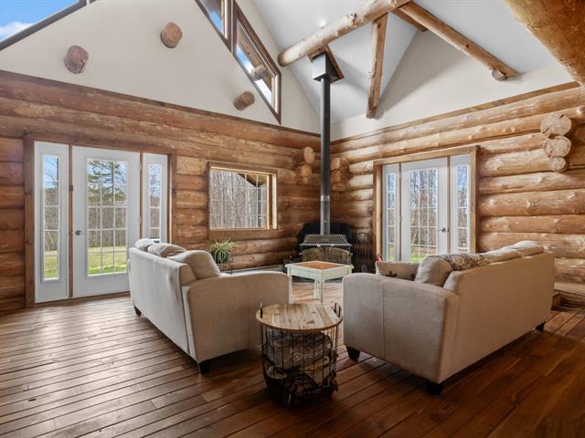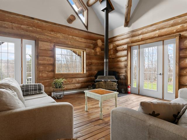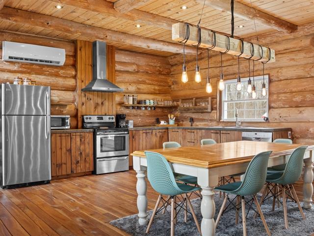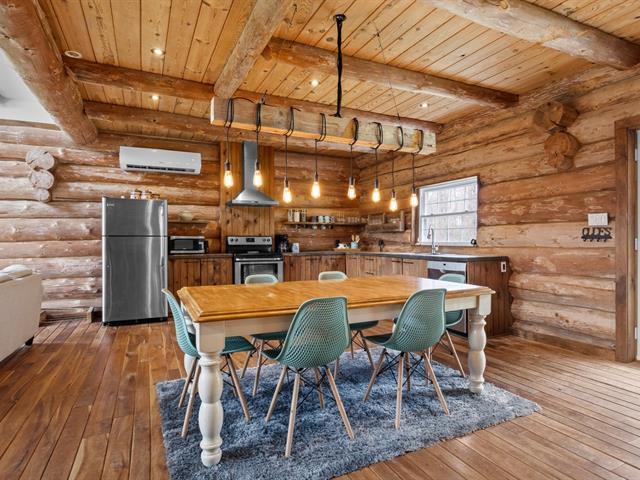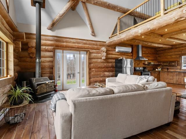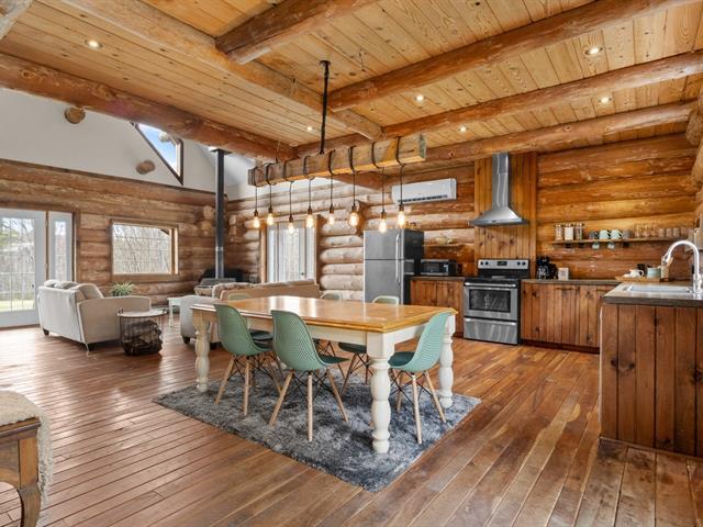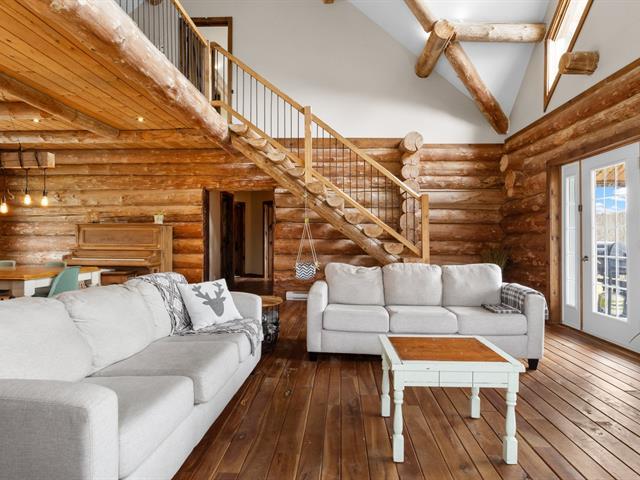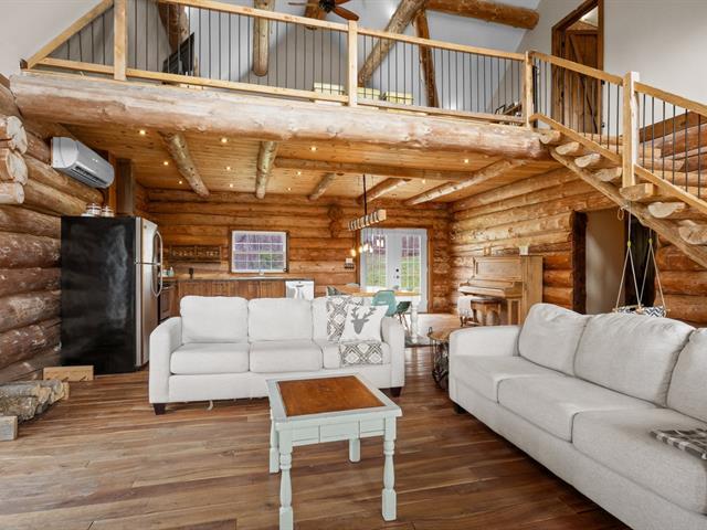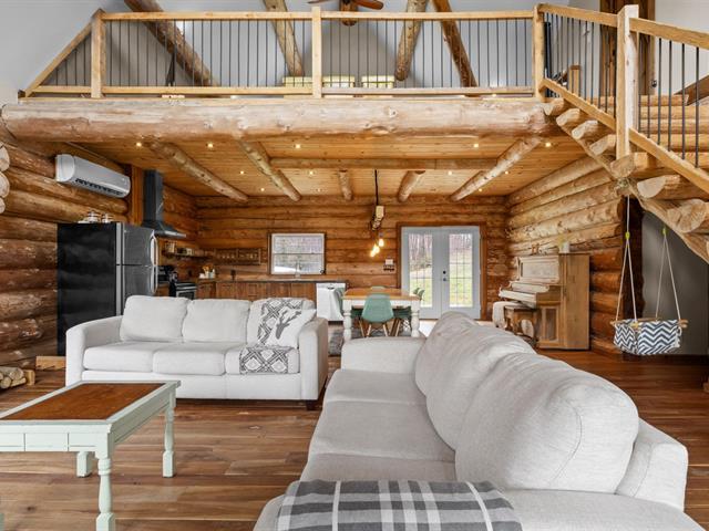 Chalet en bois rond niché au coeur de la nature, sur un vaste terrain intime d'environ 4 acres! Ambiance chaleureuse et authentique, aire ouverte baignée de lumière, et 3 chambres confortables, dont une suite principale spectaculaire avec salle de bain privée à l'étage. Profite d'une terrasse couverte pour les soirées d'été, d'un coin feu extérieur pour les moments entre amis. Ce havre de paix offre tranquillité, charme et un fort potentiel locatif grâce à la location à court terme permise. Un refuge nature parfait pour allier détente et rentabilité! (42635945)
