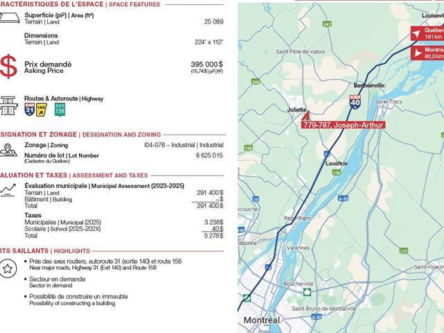 Opportunité à saisir. Terrain industriel d'une superficie de 25 089 pi2 offrant la possibilité d'y ériger un bâtiment selon vos besoins. Situé dans un secteur stratégique à proximité de l'autoroute 31. Me contacter pour obtenir plus d'information. TPS/TVQ doivent être ajoutées au prix demandé (50157704)