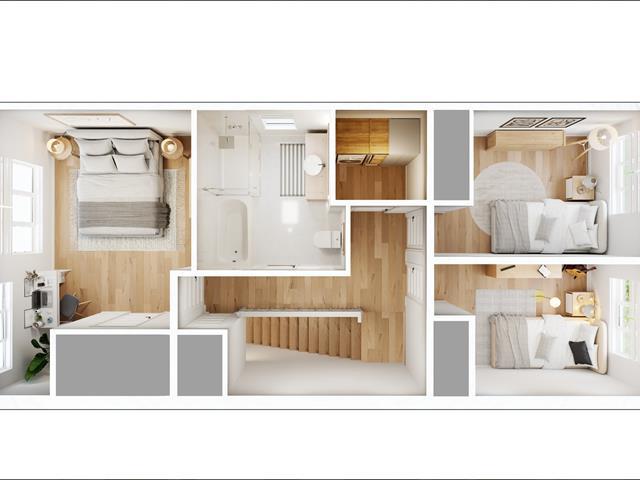Terrain plat, Voie d'accès pavée, Armoires en mélamine, Fenêtres PVC, Fenêtres à manivelle