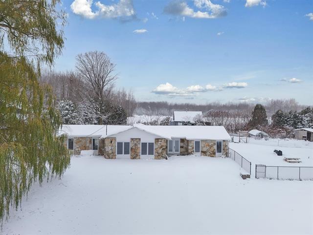 Bienvenue au 148 Rang Saint-Claude, St-Bernard-de-Lacolle ! - 37 087 PI2 - TRANQUILLITÉ ASSURÉE - ZONAGE AGRICOLE ET RÉSIDENTIEL - Découvrez ce plain-pied ayant subi plusieurs améliorations récentes : toiture, porte et fenêtres à 100%, cuisine de qualité complètement rénovée avec immense îlot + comptoirs de quartz, puits 2022 et +. Située sur un terrain de 37 087 pi², vous offrant une partie clôturée ainsi qu'une grange, cette propriété vous offre 3 chambres, 2 salons et une s. de bains rénovée avec céramique chauffante. Située dans un secteur très paisible, elle bénéficie tout de même d'un accès facile et rapide à l'autoroute 15. À voir !!! (53082879)