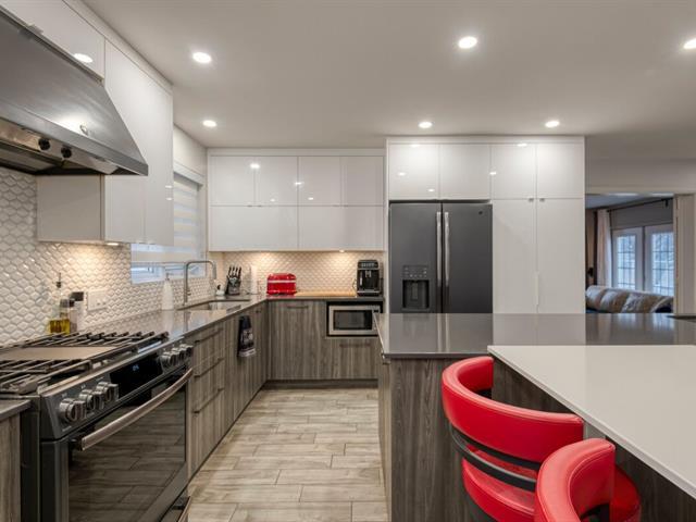 Maison haut de gamme clé en main à St-Germain-de-Grantham Superbe propriété offrant 5 chambres, dont 4 sur le même plancher, idéale pour une grande famille ou pour ceux qui recherchent espace et confort. Vous serez charmés par sa cuisine haut de gamme dotée de comptoirs en quartz, d'une banquette intégrée et d'un coin bar parfait pour recevoir. Les salles de bains rénovées, le walk-in dans la chambre principale et les planchers de céramique chauffante partout assurent un confort optimal à l'année. Le grand salon chaleureux avec foyer au gaz et le poêle à bois au sous-sol créent une ambiance conviviale pour les soirées d'hiver. Suite addenda (51711249)