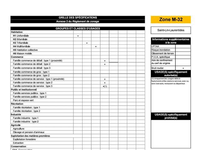 Zonage Multiples, commercial et Multi Résidentiel H3 ou H4 , Commerces de services, Station de service.. à vérifier avec la municipalité pour divers projets. Zonage M-32 voir grille ci-jointe. (52337122)