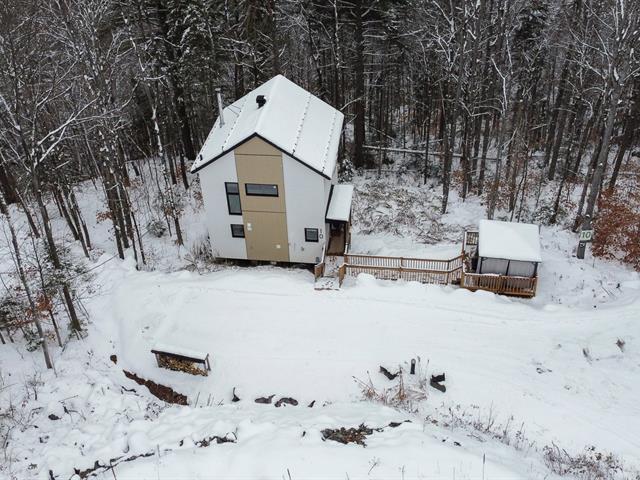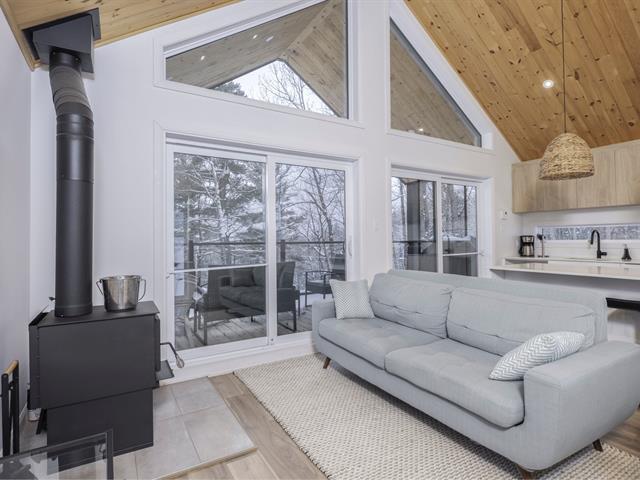 Wow... Chalet moderne construit en 2022. Vendu tel quel, entièrement meublé et équipé,. Permis CITQ en vigueur avec des réservations Airbnb. Offrant 2 chambres, 1 salle de bain, un grand balcon avec vue imprenable sur la forêt, ainsi qu'une terrasse privée équipée d'un spa et d'un gazebo, le tout sur un terrain de 9 447 pi². Situé dans un domaine en copropriété permettant la location à court terme, avec possibilité de gestion ou non. Sentier pédestre de 1,2 km et futur chalet communautaire. Que vous recherchiez un havre de paix personnel ou une propriété locative rentable, ce chalet représente une opportunité exceptionnelle. À qui la chance. TPS/TVQ doivent être ajoutées au prix demandé (54810013)