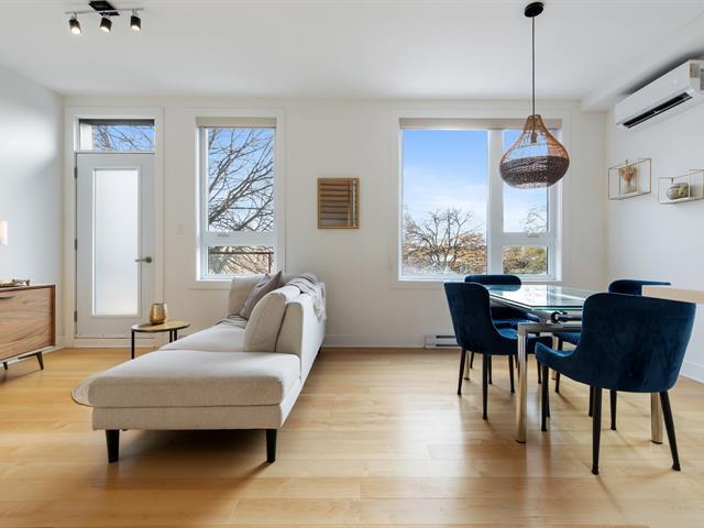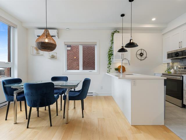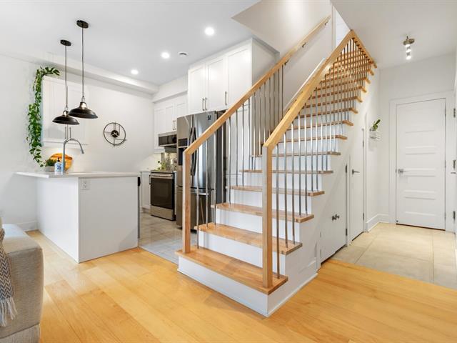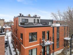 Magnifique condo de construction récente sur 2 niveaux avec terrasse privée de 21,5x12,10 et vue spectaculaire sur Montréal!L'étage de vie principal baigné par sa fenestration abondante et sa luminosité vous charmeront.Salon ouvert sur la cuisine et la salle à manger, cuisine avec comptoir en quartz et beaucoup de rangement, une jolie salle d'eau et un balcon privé. L'unité possède 3 CAC, dont la CCP avec SDB attenante donnant accès sur la terrasse extérieure. 2 autres CAC ou espace bureau, coin boudoir avec accès également à la terrasse. 2e SDB avec bain douche et entrée laveuse-sécheuse.1 stationnement extérieur + 1 rangement extérieur. (56013205)