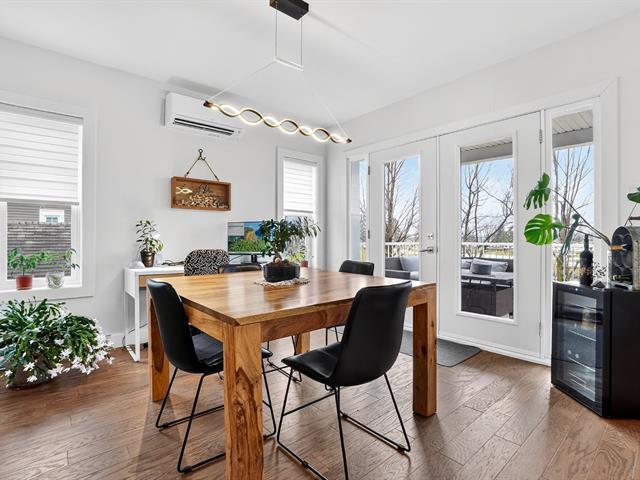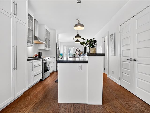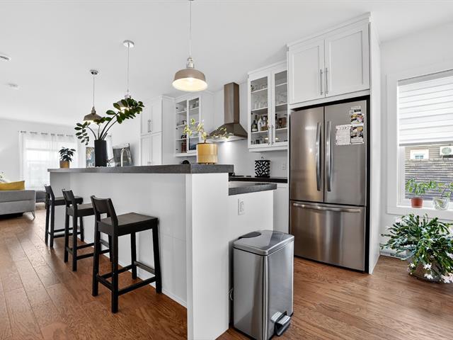 Superbe condo 4 ½ actuellement loué 1 730$/mois jusqu'au 10 février 2026, puis libre à l'acheteur. Inondé de lumière, il offre une vue dégagée sur deux parcs, un étang et la montagne, avec des levers et couchers de soleil saisissants. Doté d'une finition haut de gamme, il inclut une cuisine Cordeau avec îlot de 11 pi, planchers de bois, douche en céramique, bain autoportant, walk-in, grand balcon, climatisation murale, aspirateur central, deux stationnements et remise. Secteur recherché près d'une école, pistes cyclables et espaces verts. (56493717)