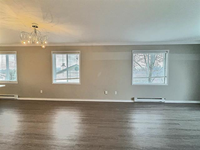 LIBRE IMMÉDIATEMENT: Impeccable 4 1/2 à louer avec belle luminosité. Hall d'entrée au rez-de-chaussée, cuisine, salle à manger et salon à aire ouverte à l'étage. Salon avec porte patio menant sur un balcon avec vue sur la ville. Grande chambre des maitres avec walk-in de 3 x 5. L'autre chambre à coucher a une belle fenestration. Les revêtements de plancher ont été changée cette année. Salle de bain avec plancher de céramique et laveuse et sécheuse. Cuisine fonctionnelle avec beaucoup de rangement et îlot. (43988601)