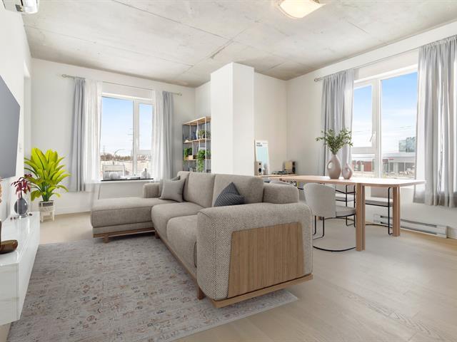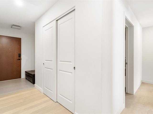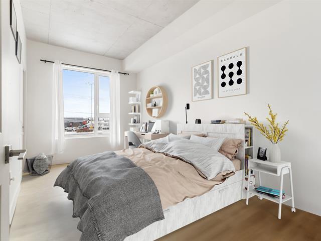 Unité de coin lumineuse offrant 2 chambres et 2 salles de bain complètes, située dans une position privilégiée sans unité en dessous. Aire ouverte avec grandes fenêtres, plafonds en béton et finitions modernes. Cuisine avec comptoirs en quartz et électroménagers encastrés. Balcon donnant sur la cour. Stationnement intérieur avec plus d'espace de dégagement, plus un casier de rangement. L'immeuble offre une piscine intérieure, un gym, des aires de détente et une terrasse avec BBQ. Emplacement idéal près des services, parcs, transports et grands axes routiers. (49500290)