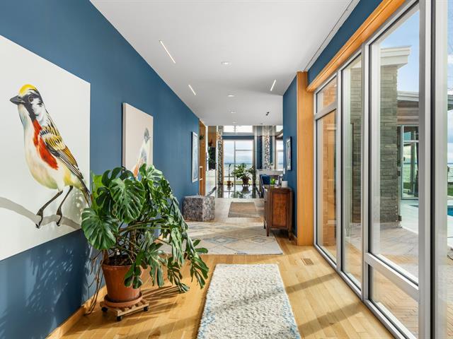 Oeuvre architecturale unique, cette demeure a été conçue sur mesure pour ce terrain riverain afin d'offrir une lumière optimale, des vues spectaculaires et une expérience de luxe absolu. Volumes contemporains, murs fenêtrés sur 75 %, cour intérieure vitrée, matériaux nobles, cuisine signature, planchers chauffants, piscine protégée des vents, trois garages et un terrain magnifiquement paysagé. Un domaine exclusif, intemporel et d'un raffinement inégalé. Visite video : https://shorturl.at/xZz7Z (49271906)