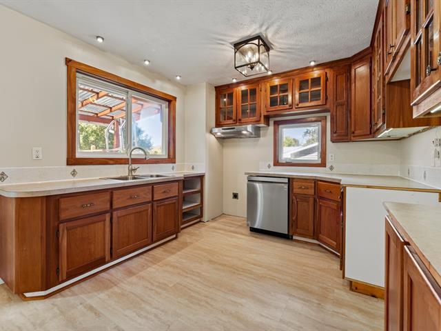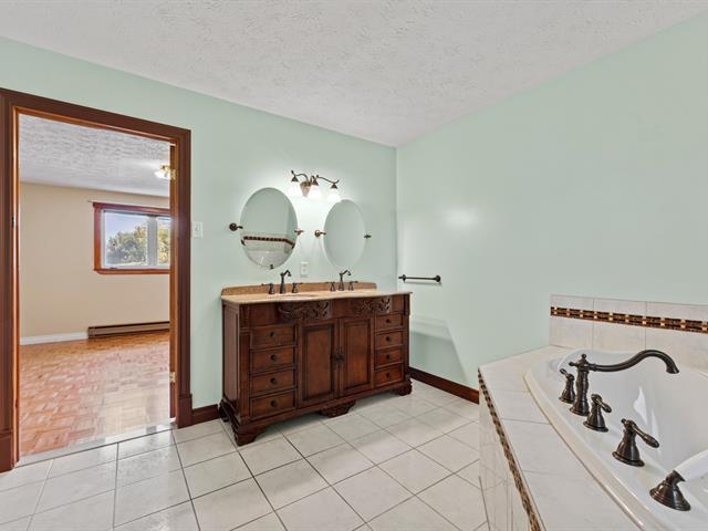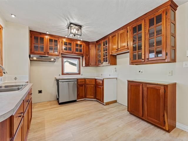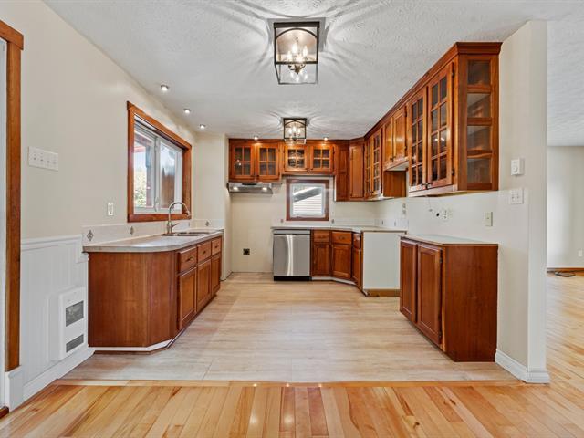 Location clé en main : maison plain-pied avec 3 chambres et 2 salles de bain, dont une avec bain podium et double vanité. Cuisine chaleureuse avec armoires en bois, salon lumineux avec foyer et sous-sol aménagé avec grande salle familiale. Profitez d'un extérieur agréable avec terrasse couverte, piscine et terrain intime, bordé d'arbres. (46055298)