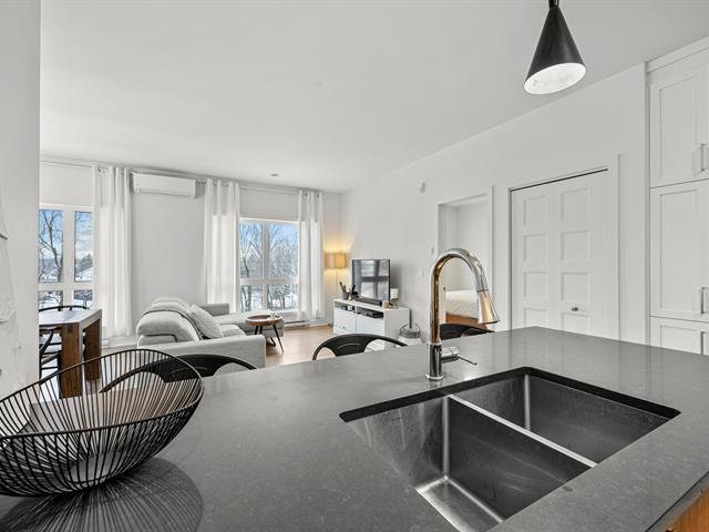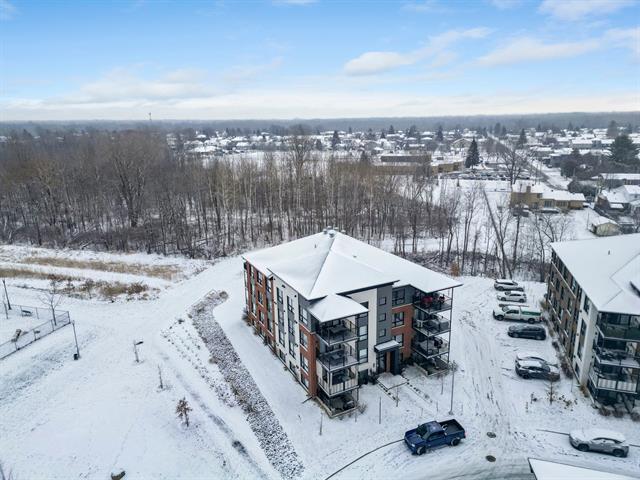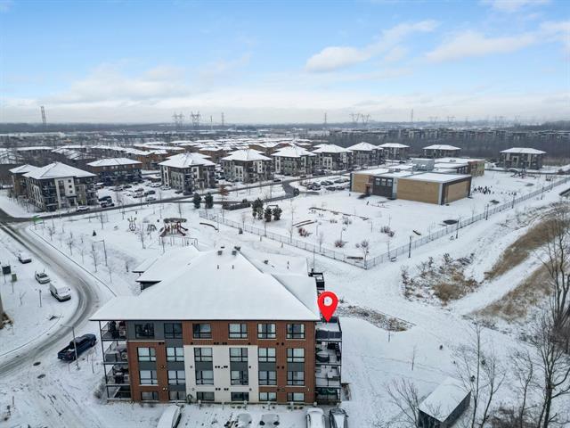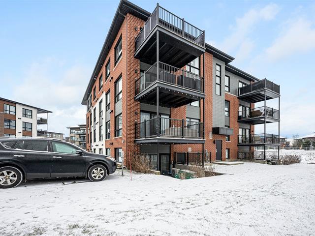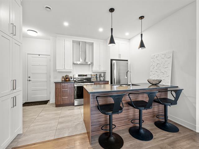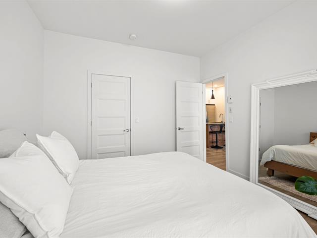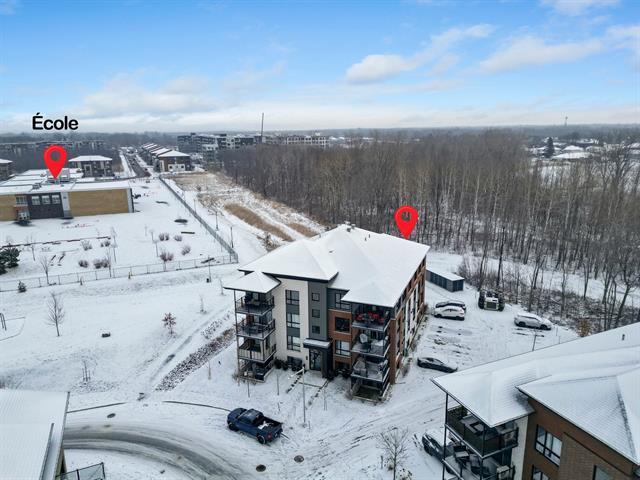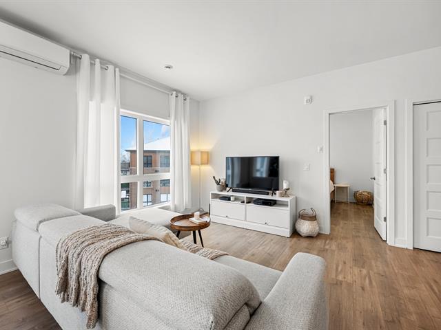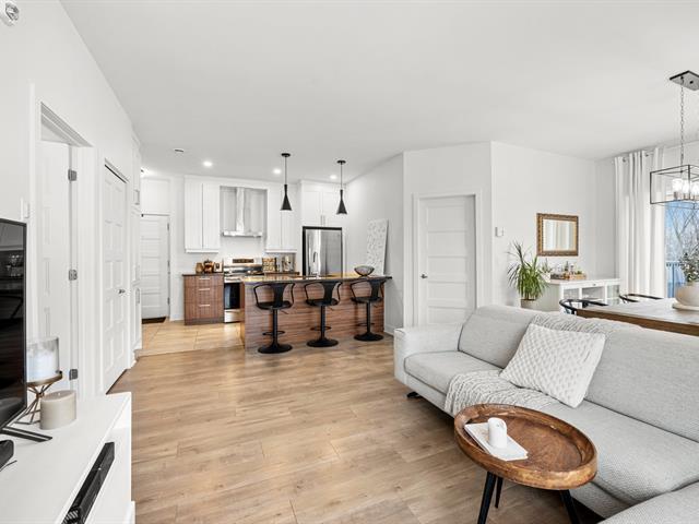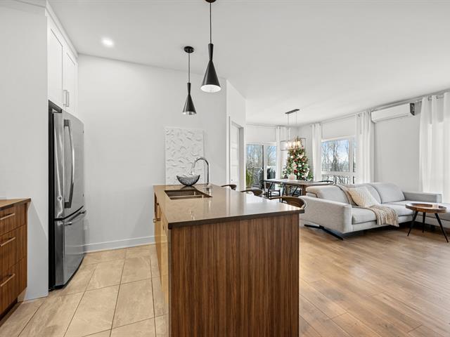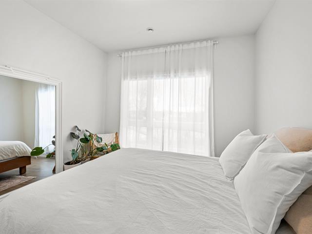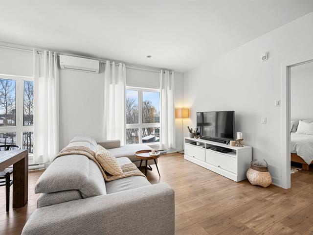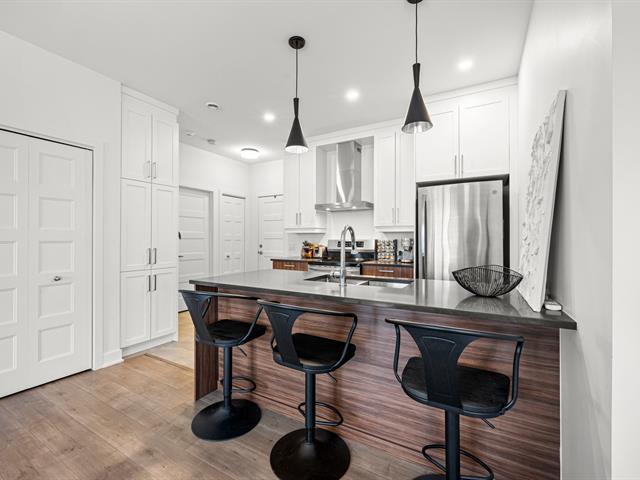 2 stationnements (une rareté). Immeuble construit en 2020 certifié LEED pour un confort absolu, situé au bout de la rue! Aucun voisin arrière. Au 3e étage à l'arrière offrant une vue dégagée sur le boisé. Matériaux choisis avec goût et élégance. Comptoir de quartz. Plafonds de 9', ultra lumineux au style contemporain! Aire ouverte conviviale, 2 grandes chambres dont une avec walk-in. Douche séparée qui était en extra à la construction. Climatisation, grand balcon, rangement extérieur. À deux pas des écoles, parcs, pistes cyclables, services et accès rapides aux autoroute (49263569)