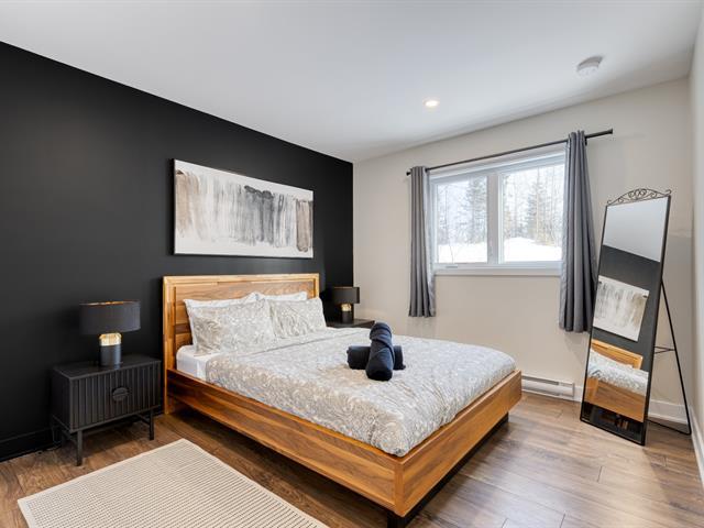 Superbe propriété déjà active en location à court terme, construite en 2024 sur un vaste terrain de ± 39 653 pi². Projet vendu tout meublé et équipé, avec de beaux meubles et un décor tendance. Aire ouverte lumineuse comprenant une cuisine avec îlot en quartz et porte-patio triple donnant sur une terrasse couverte avec spa. Total de 3 chambres et 2 salles de bain avec planchers chauffants, ainsi qu'une salle familiale avec plafond cathédrale et foyer au gaz. (2) climatiseurs muraux et un éclairage encastré assurent un confort optimal. Cadre paisible, accès au lac, pistes de VTT et de motoneige et à côté de la station de ski Val St-Côme! TPS/TVQ doivent être ajoutées au prix demandé (56987051)