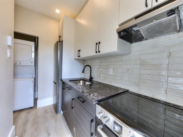 Appartement de 2 chambres entièrement rénové situé au coeur de NDG, à distance de marche du campus Loyola de l'Université Concordia. Planchers en bois partout et aire de vie spacieuse avec grandes fenêtres offrant une belle luminosité. Deux chambres fermées avec de grandes fenêtres, dont une avec accès direct à un petit balcon donnant sur la rue. Salle de bain rénovée avec bain, céramique, vanité moderne, robinetterie noire et fenêtre. Cuisine fonctionnelle, dossier en céramique, électroménagers en acier inoxydable et laveuse-sécheuse superposées dans l'unité. (53092815)