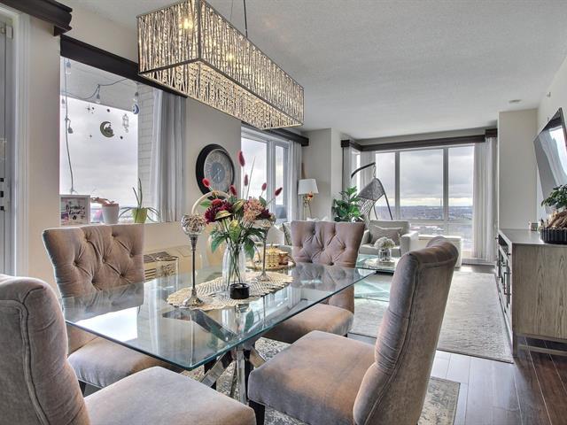 Superbe unité de coin orientée sud-ouest offrant une vue spectaculaire et une luminosité exceptionnelle. Terrasse privée à l'arrière, côté sud, avec vue sur la Rive-Sud, le pont Jacques-Cartier et le centre-ville de Montréal. Construction en béton assurant une insonorisation supérieure. Comprend stationnement intérieur chauffé (#410) et grand espace de rangement (A-407). Immeuble prestigieux de 25 étages offrant gym, terrasse verte avec fontaine, salle de réception, chambre d'invités, ascenseurs et système de sécurité. À quelques pas du métro Longueuil, accès rapide à la 132, au pont Jacques-Cartier, aux pistes cyclables, à l'UdeS. (44103102)