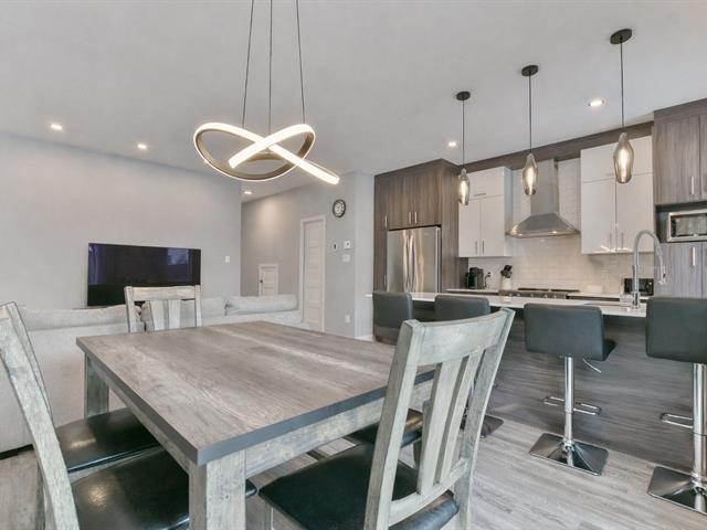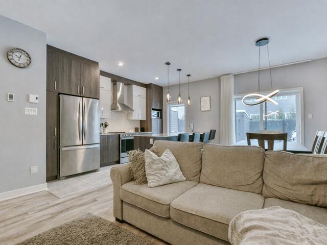 Cette propriété en rangé propose un modèle allongé aux espaces généreux et bien pensés. Dès l'entrée, les plafonds de 9 pieds et l'éclairage encastré créent une ambiance moderne et lumineuse. La cuisine séduit par ses lignes épurées, son îlot allongé et ses matériaux de qualité. À l'étage, trois grandes chambres offrent intimité et rangement optimisé, incluant des pièces-penderies bien aménagées. La salle de bain devient un véritable espace détente avec planchers chauffants et bain autoportant. Fonctionnel et actuel, ce jumelé combine rangement, confort et efficacité énergétique, avec cabanon et préparation pour borne de recharge. (51985096)