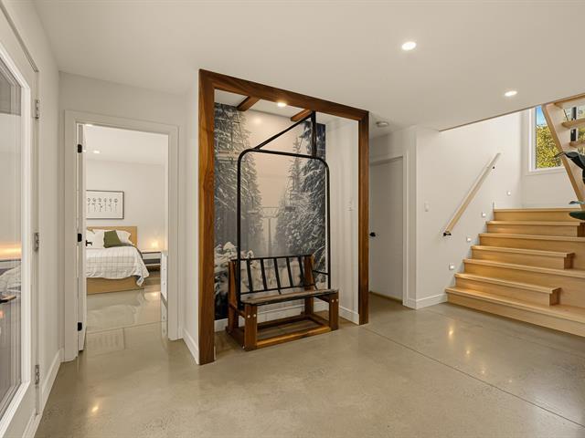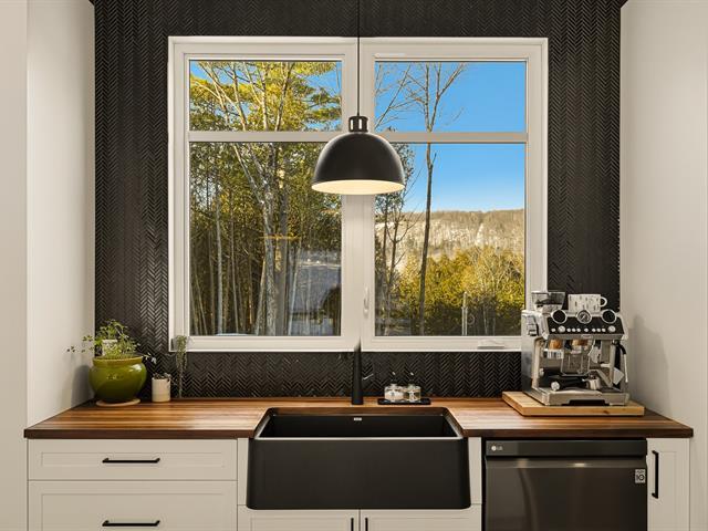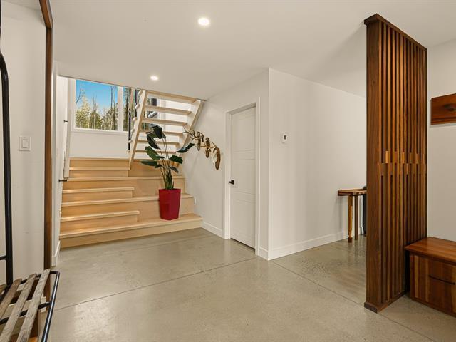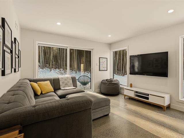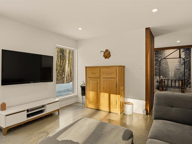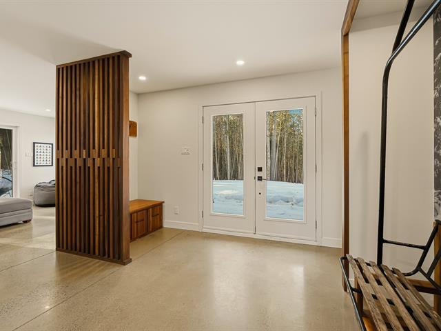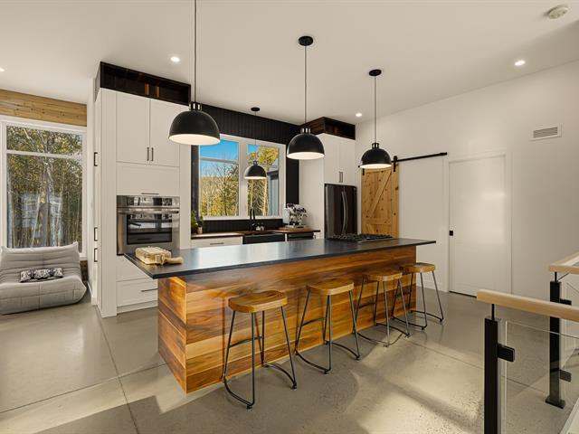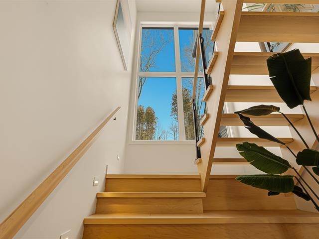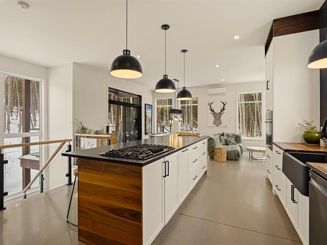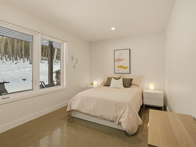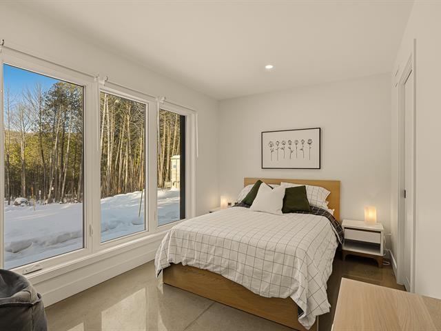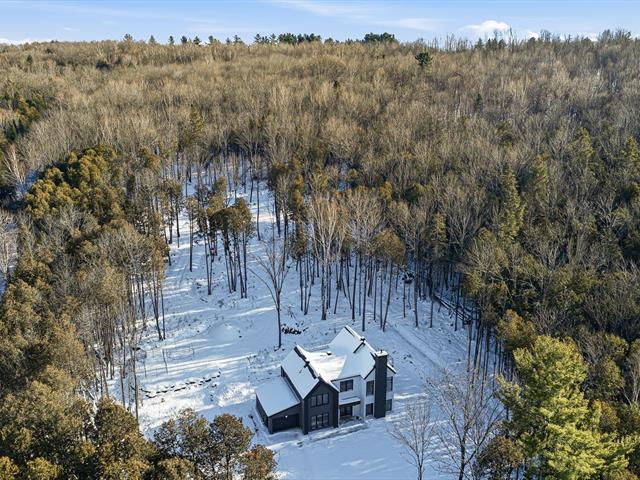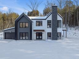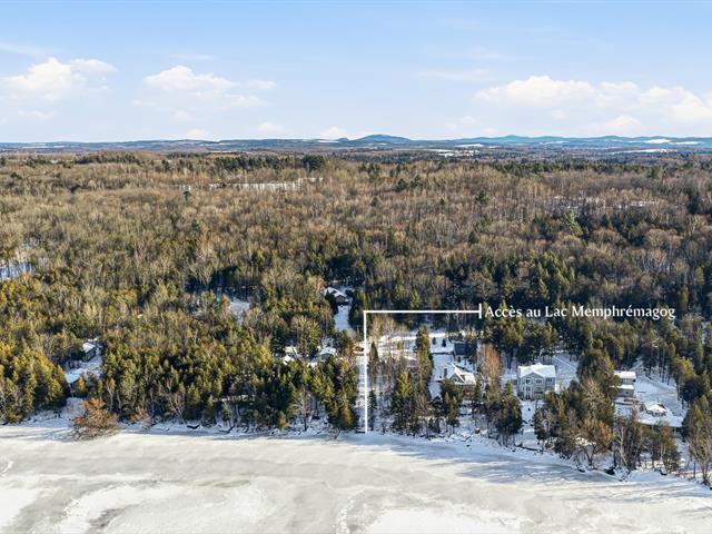 Accès au lac Memphrémagog. Résidence 2022 perchée sur 13 185 m2 de nature soigneusement aménagée, offrant une intimité rare et des percées sur la forêt. Suite des maîtres à l'étage avec dressing sur mesure et salle de bain attenante dotée d'une douche terrazzo. Cuisine de chef signée granit et noyer avec ilot 14 pieds et pantry adjacente. Planchers chauffants sur deux niveaux, garage relié au mudroom et salle de lavage indépendante. Poêle au bois au salon, lumière omniprésente grâce à une fenestration magistrale et à une architecture moderne nichée dans la nature. (54117365)