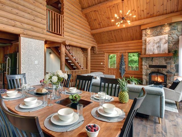 Chalet en bois rond à Labelle -- Locations à court terme permises Magnifique chalet situé dans le domaine recherché de Blueberry Lake, offrant tranquillité et nature. Ambiance chaleureuse avec foyer en pierre, grande fenestration et vue sur le lac. La propriété comprend 4 chambres, 3 salles de bain, une cuisine équipée et une vaste salle familiale. À l'extérieur : spa privé, espace feu et accès au lac, idéal pour les activités nautiques. À seulement 30 minutes de Mont-Tremblant et à proximité d'un autre lac. Offre une excellente rentabilité en location à court terme. TPS/TVQ doivent être ajoutées au prix demandé (40181508)