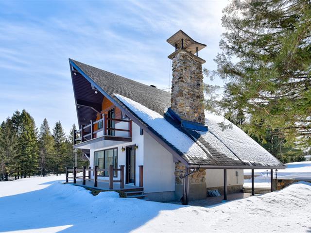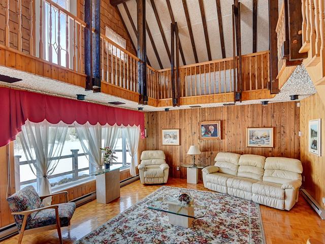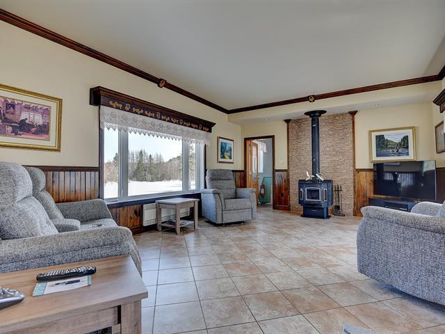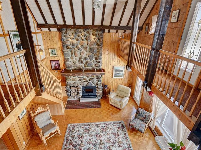 UN VRAI HAVRE DE PAIX! Cette spacieuse résidence située sur un terrain boisé de 86 450 pc avec lac a beaucoup à vous offrir! Son style rustique et ses grands espaces ne vous laisseront pas indifférent. Retrouvez-y un GARAGE 32 X 26 P., 3 chambres à coucher dont 2 à l'étage, 2 salles de bains, céramique chauffante (SDB RDC, cuisine, salle de séjour), plafond cathédrale au salon, boiseries, sous-sol totalement aménagé, 2 foyers au bois (salon et salle familiale) et poêle au bois dans la salle de séjour, entrée indépendante au sous-sol. Retrouvez un cadre de vie enchanteur où confort et proximité avec la nature sont au RDV. Bienvenue à tous! (58056074)
