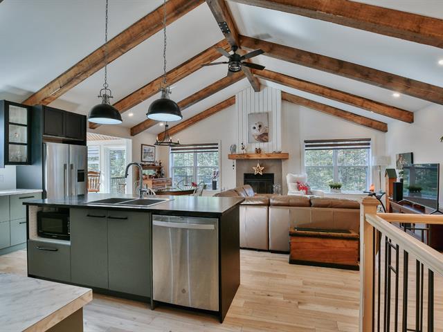 Superbe plain-pied récent au cachet rustique dans un environnement exceptionnel. Toit cathédral, poutres en pin naturel, verrière 4 saisons, foyer au bois, garage et accès notarié au lac Cambria. Construction unique sur mesure. Le confort souhaité en pleine nature. Une visite vous attend! (49928550)