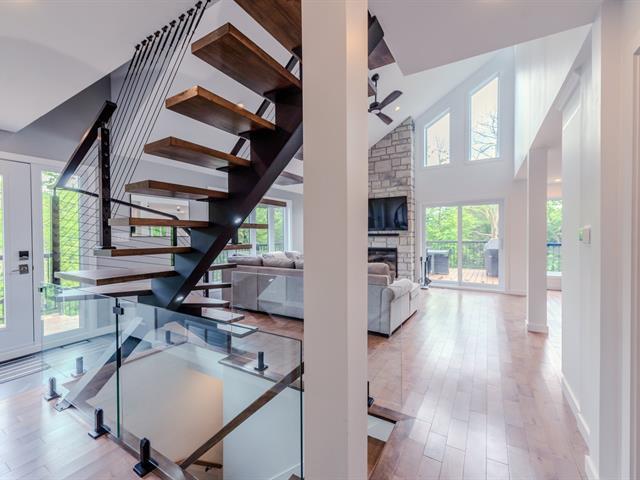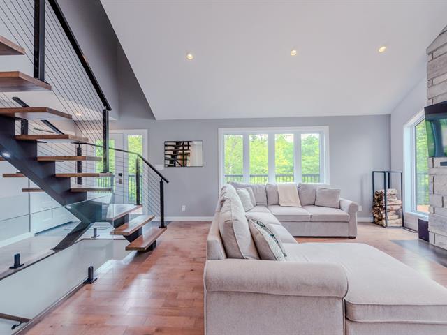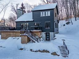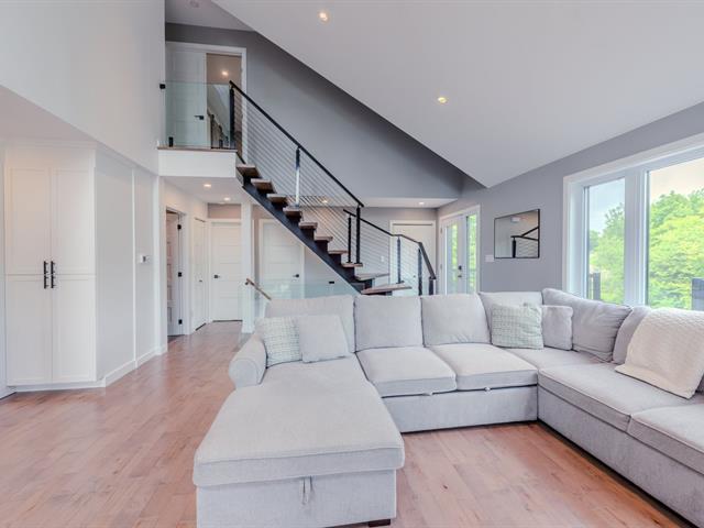 Maison construite en 2022, pensée avec rigueur et intégrée harmonieusement à son environnement naturel. Implantée en montagne, elle se distingue par son style et son terrain en plateau et la spacieuse terrasse. À l'intérieur, l'étage principal impressionne avec ses plafonds de 17 pieds, son foyer au mur de pierre, ses comptoirs de quartz et sa fenestration généreuse qui inonde les espaces de lumière. Le rez-de-jardin propose un vaste espace familial, offrant un réel potentiel pour un projet intergénérationnel. Emplacement stratégique entre Val-Morin et Sainte-Adèle. (55964667)