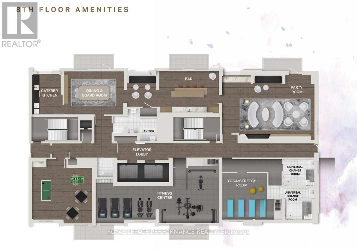 Salle de réception, Salle d'exercises, Service de sécurité/conciergerie, Armoire vestiaire