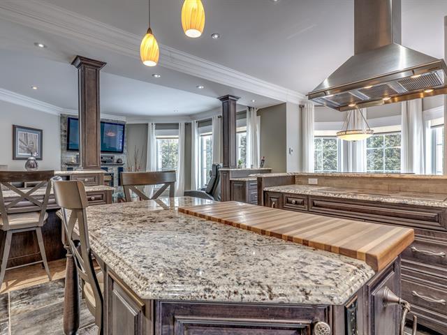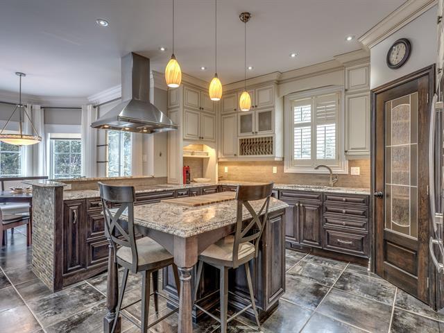 Bienvenue au 45 Rue de Servando. Maison de prestige située sur rue privée dans le très recherché quartier Fontainebleau, offrant luxe, intimité et tranquillité absolue. Emplacement exceptionnel à pied de l'école primaire, près du Club de golf Fontainebleau (Rosemère) et accès rapide A-640. Cuisine spectaculaire rénovée avec armoires d'érable, comptoirs de granite, îlot, pantry et électroménagers haut de gamme inclus. 2 salons avec foyers au gaz, planchers chauffants. 3 chambres à l'étage dont une suite des maîtres rénovée en 2022, poss. d'une autre cac. Cave à vin de 1 600 bouteilles, garage 4 voitures, génératrice. Poss. de vendre meublée (40647262)