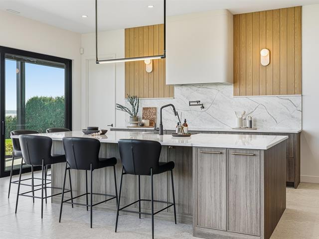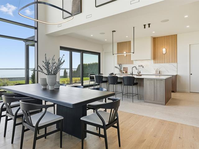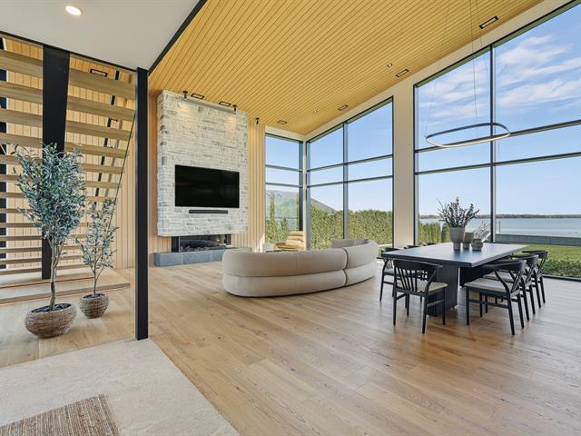 Élégance. Raffinement. Bord de l'eau. Propriété neuve au design contemporain sur les rives du lac des Deux-Montagnes. Plus de 5 400 pi² habitables : garage quadruple en céramique, deux terrasses privées et fenêtres pleine hauteur offrant une vue imprenable. Cuisine haut de gamme avec électroménagers encastrés, cellier, arrière-cuisine et robinet pot-filler. Salon cathédrale de 22 pi avec foyer au gaz. Terrain paysagé, accès direct au lac et possibilité d'un quai privé. Deux adresses distinctes permettant l'aménagement d'un bureau ou d'un logement indépendant. (38901527)