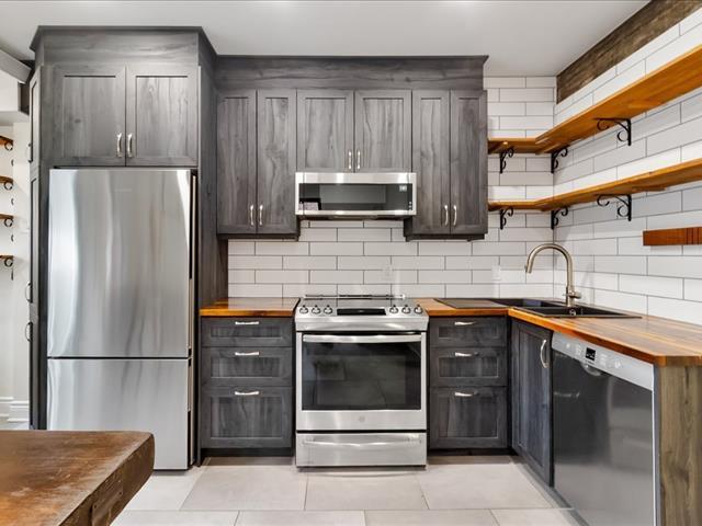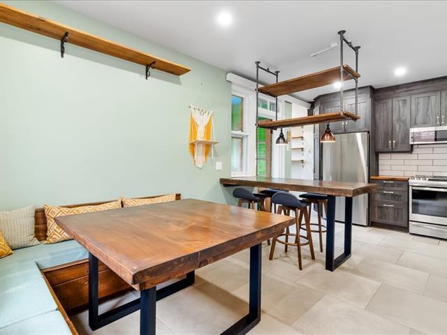 Haut de duplex indivis rénové, situé au coeur de Côte-des-Neiges, à distance de marche du métro, des commerces et des services. Aire de vie ouverte et lumineuse offrant une circulation fluide entre le salon, la salle à manger et la cuisine. Cuisine moderne avec îlot central et nombreux rangements intégrés. Deux chambres, dont une chambre principale généreuse avec coin bureau. Salle de bains et salle d'eau bénéficiant de puits de lumière. Fenestration sur trois côtés, thermopompe murale et espace de rangement au sous-sol. (49503738)
