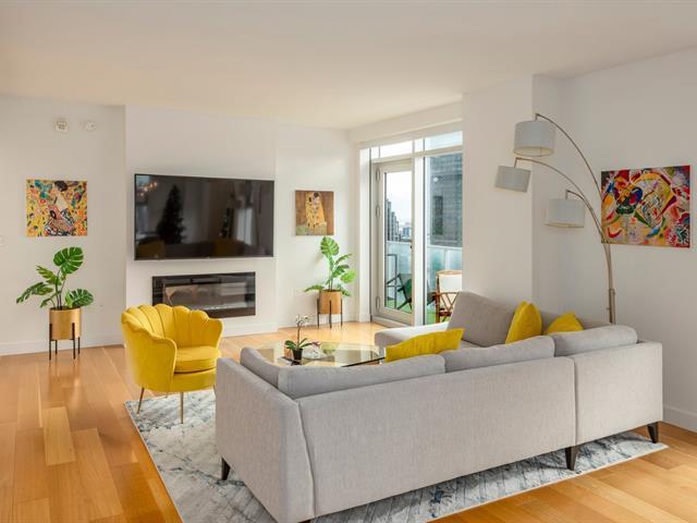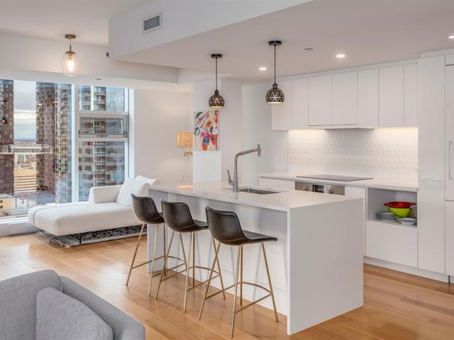 En étage élevé (34e) d'Humaniti, se dresse cet appartement spectaculaire, tant par ses espaces de vie conviviaux que ces vues époustouflantes sur la ville et le Mont Royal. Il est baigné de lumière naturelle grâce à ses fenêtres panoramiques, son orientation Nord-Ouest ainsi que sa position de coin. Doté de 2 belles chambres, 2 SDB, Un joli balcon. Humaniti offre des prestations dignes d'un hôtel 5 étoiles, emplacement de choix à deux pas des restaurants branchés, spectacles et boutiques. Idéal pour les amoureux d'une vie urbaine active. (46553061)