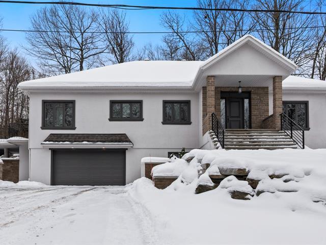Magnifique propriété de 3+2 CAC et 3+1 SDB, offrant espace, intimité et un plan d'étage polyvalent. Le rez-de-chaussée comprend un salon avec foyer et accès à la terrasse, une grande cuisine avec coin repas, un bureau, une salle d'eau, 3 chambres dont une suite principale avec walk-in et salle de bain attenante, ainsi qu'une salle de bain familiale. Sous-sol entièrement aménagé, lumineux, avec 2 chambres, bureau, salle familiale, SDB complète et accès au garage double. Echangeur d'air et chauffage à air pulsé. Idéale pour les grandes familles ou cohabitation intergénérationnelle. Fournaise et thermopompe 2022. Plusieurs mises-à-jour 2024. (55703334)