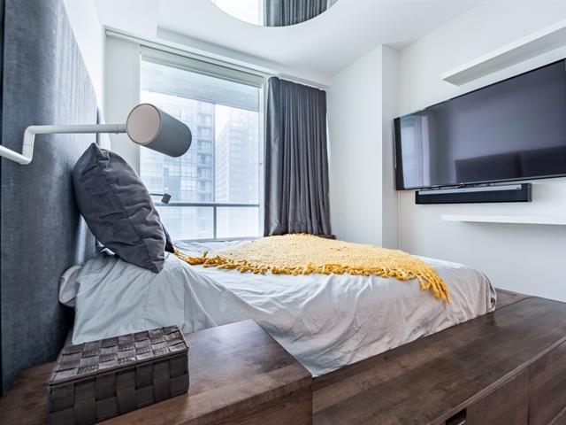 ***** Occupancy April 1, 2026 ***** Condo luxueux dans la prestigieuse tour Roccabella offrant des vues spectaculaires situé au coeur du centre-ville. Un condo très lumineux offrant une vue sur le Sud-Ouest, grande chambre, plusieurs espaces communs incluant salles de conférence et de fête, piscine, spa, gym, sauna, terrasse, salle de cinéma et sécurité 24/7. (56789563)