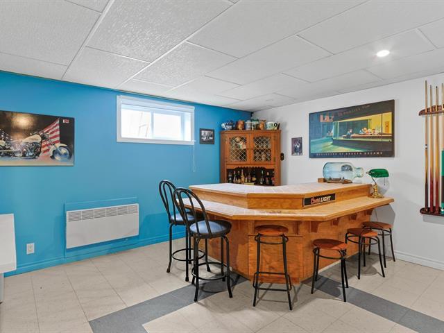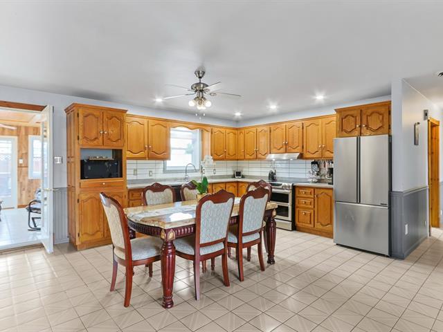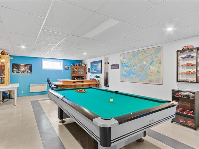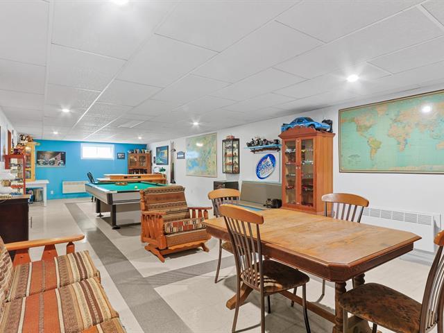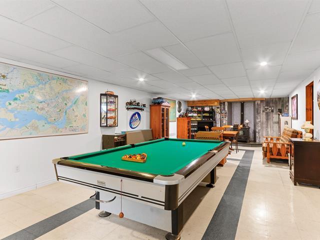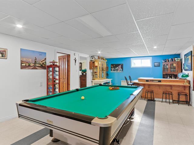 Superbe maison de type Canadienne plain-pied offrant une abondante fenestration et une véranda 4 saisons pour en profiter toute l'année. Elle comprend 2 chambres au rez-de-chaussée (possibilité d'en faire une 3e en divisant la chambre principale) ainsi qu'une chambre au sous-sol. Deux salles de bain complètes. Spacieuse salle familiale avec bar et table de billard. Pour les journées froides d'hiver, un poêle au mazout apporte confort et chaleur. Située sur un coin de rue, la propriété dispose d'un très grand terrain avec piscine hors terre. Un grand garage complète le tout. Un cadre de vie accueillant, pratique et chaleureux! (50737379)
