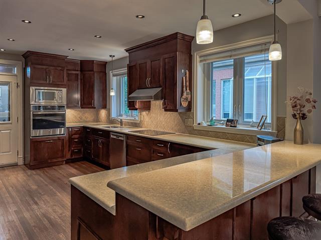 Plein-pied haut de gamme avec possibilité de chambre ou bureau au 2e étage. Garage double en tandem (actuellement séparé, facile à remettre). Cuisine complète possible au sous-sol, entrée privée envisageable pour bureau. Vue sur le Mont-Royal et l'Oratoire, emplacement recherché à proximité des commodités, écoles et transports. Occupation flexible. (46249805)