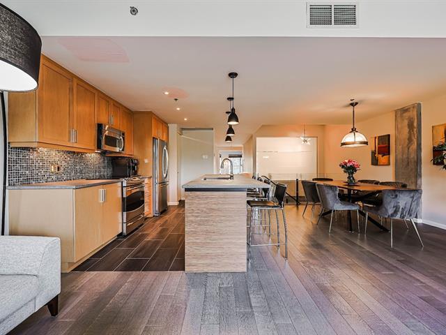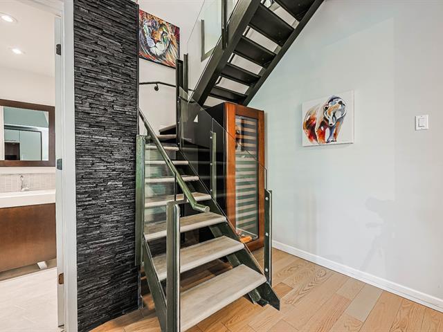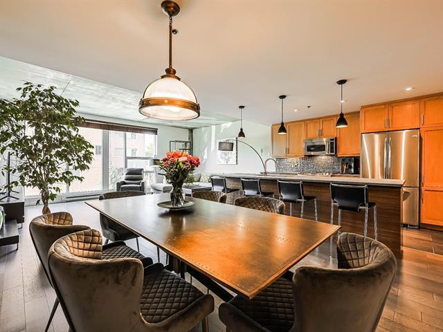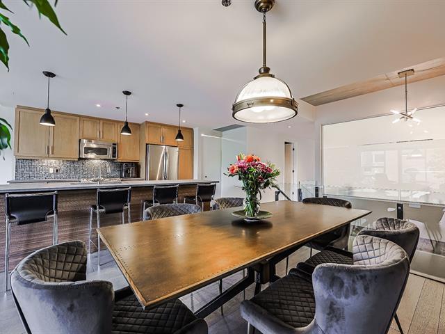 Condo UNIQUE et spectaculaire sur 2 ÉTAGES et RÉNOVÉ de A à Z avec des matériaux nobles au contemporain SAX 1! Cette spacieuse unité transversale de 1939pi2 offre un espace de vie aéré et décloisonné, un escalier ouvert, des plafonds en béton exposés allant jusqu'à 10 pieds de hauteur, une cuisine luxueuse avec immense îlot central et comptoirs de quartz, de superbes planchers de bois, 3 chambres à coucher, 3 salles de bain, une terrasse intime, une piscine extérieure et des jardins hors du commun, 2 garages et 2 espaces de rangement. Pour un style de vie confortable et à proximité à pied de tous les commerces et services et du REM! (44719730)