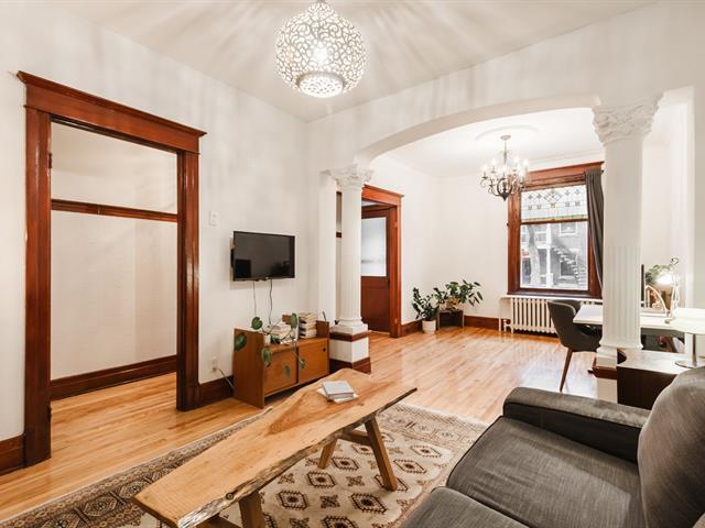 SUPERBE PROPRIÉTÉ AVEC STATIONNEMENT EN PLEIN COEUR DU PLATEAU. Cachet d'origine préservé: boiserie, rosaces, moulures, plancher de bois francs et hauts plafonds à l'honneur. Cuisine rénovée avec îlot central. Salle à manger conviviale avec vaisselier encastré d'époque. Chambre des maîtres avec un système de rangement ultra-fonctionnel. Salle d'eau avec laveuse-sécheuse aménagée au sous-sol. Stationnement et petite terrasse privée à l'arrière. Emplacement de choix: Entre l'avenue Mont-Royal et le Parc La Fontaine. Profitez des avantages de vivre sur une rue tranquille tout en étant à quelques pas des meilleures adresses du Plateau Mont-Royal! (44617396)