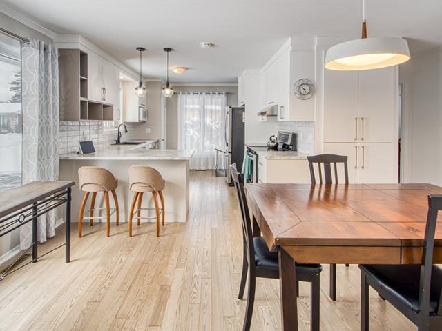 Plain-pied en brique de 4 chambres avec abri d'auto double et garage de 16"x22" sur grand terrain bordé de haies de cèdres. Quartier paisible sans voisin direct à l'avant et très bien orienté pour le soleil. À aire ouverte, belle luminosité intérieur, cuisine rénovée et fonctionnelle avec grand comptoir. Salle de bain rénovée, laveuse et sécheuse à l'étage. Sous-sol complété. À voir absolument ! (45399883)